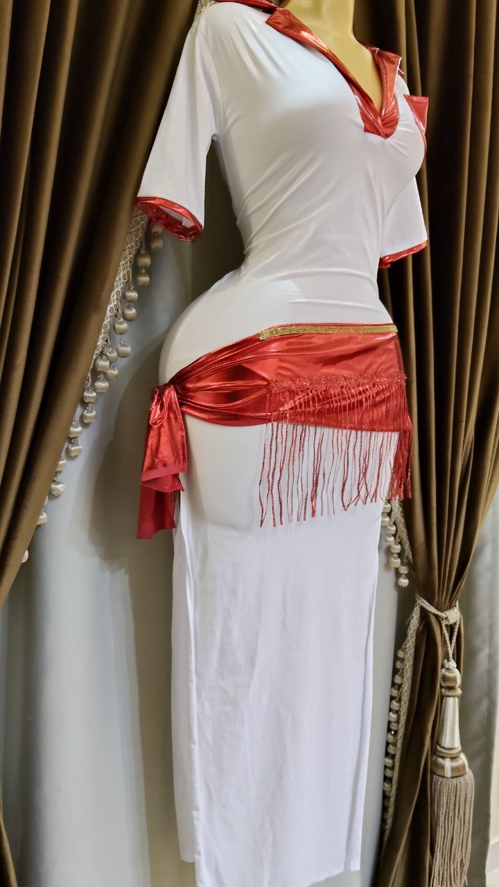جلابية بديعة للرقص الشرقي مميزة بتصميم أنيق يجمع بين الراحة والفخامة، مصنوعة من قماش ليكرا . تأتي مع حزام احمر ديسكو لإطلالة متكاملة.