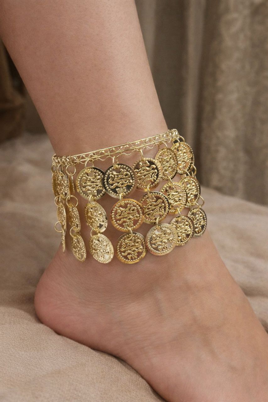خلخال معدني مكون من 3 صفوف من الكوينز