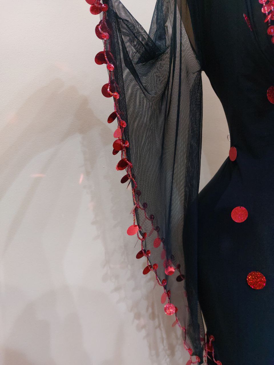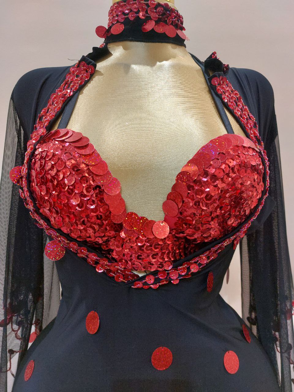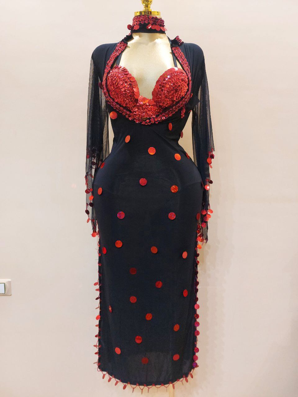 جلابية بوسي للرقص الشرقي مميزة بتصميم أنيق يجمع بين الراحة والفخامة، مصنوعة من قماش ليكرا مع كم شيفون خفيف. تأتي مع برا أحمر هاند ميد وباندنا للشعر لإطلالة متكاملة.
