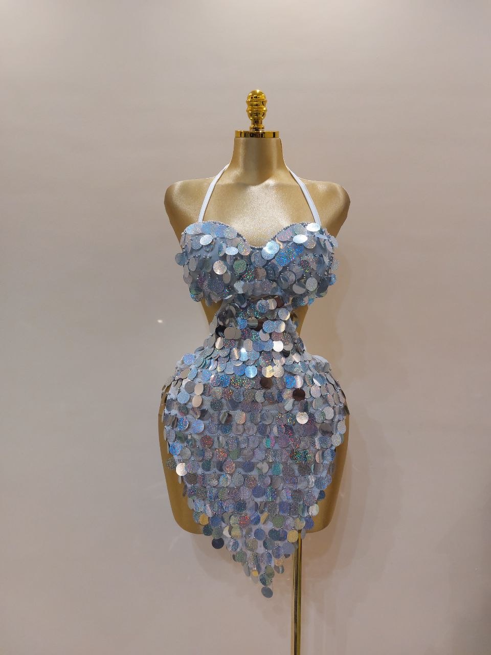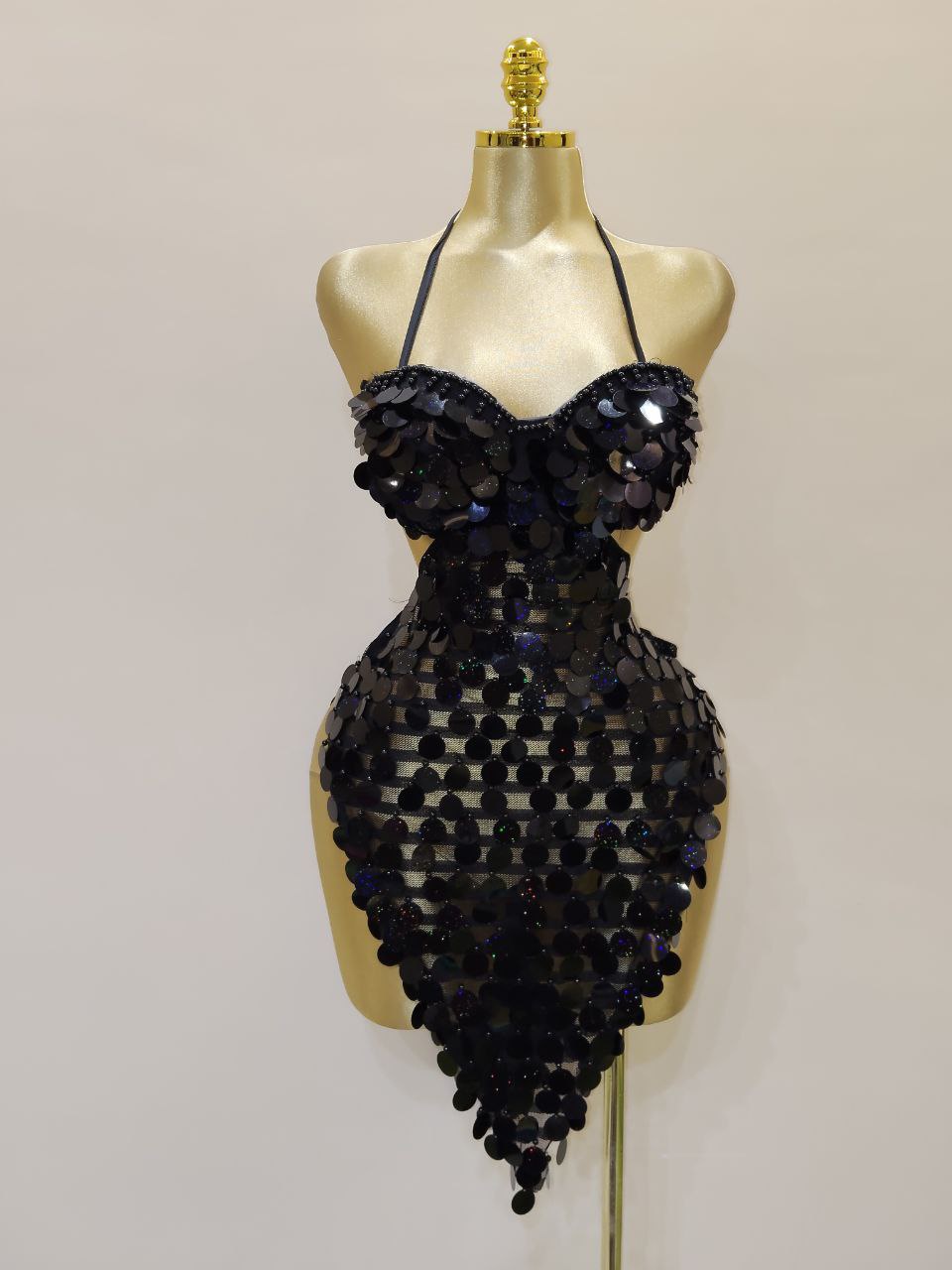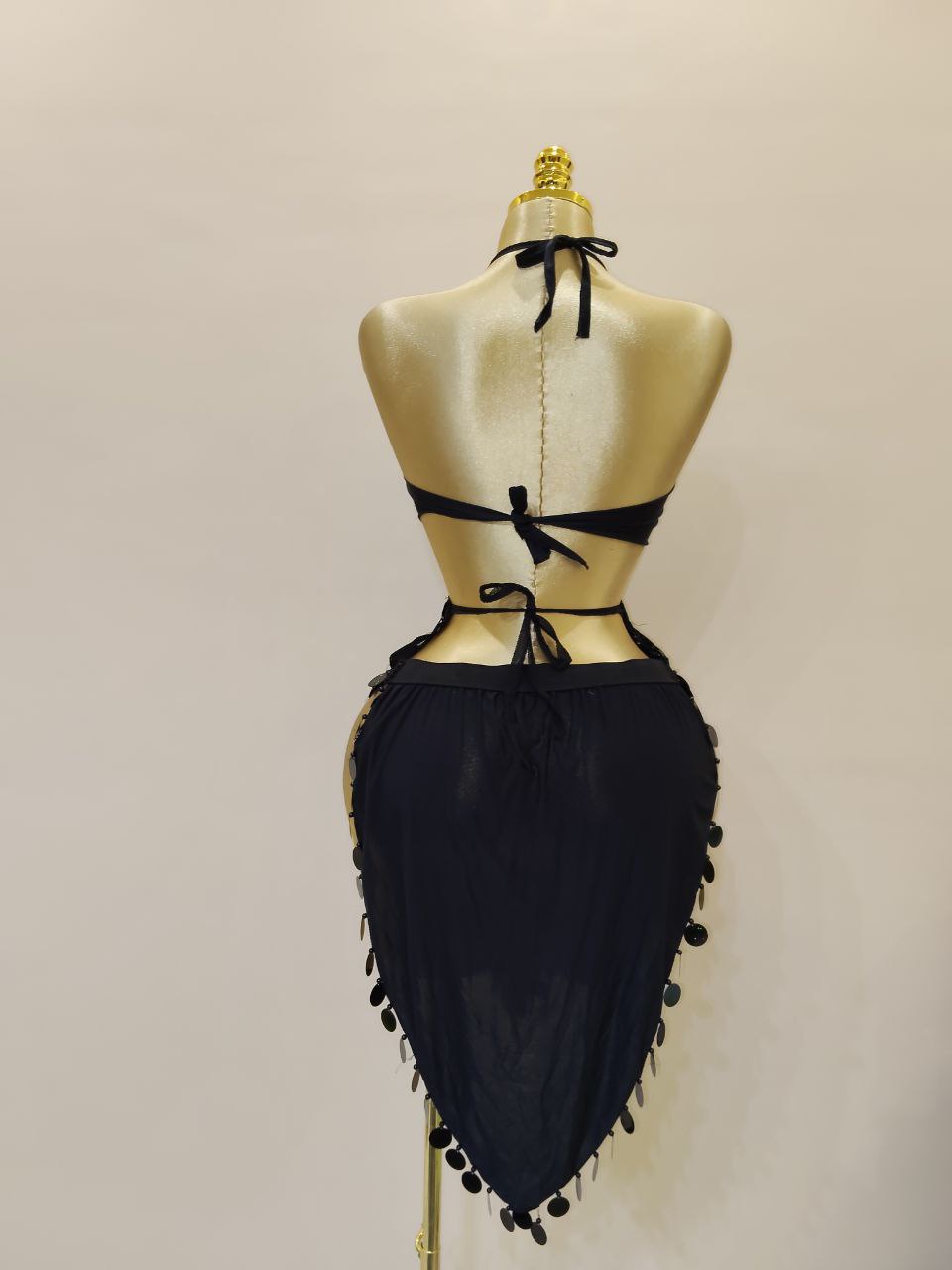 بدلة دوامة من الترتر الفاخر، مصممة يدوياً لتمنحكِ لمعاناً ساحراً تحت الأضواء. خامة مريحة وتصميم يبرز جمال الحركة. اطلبيها الآن واخطفي الأنظار في كل عرض