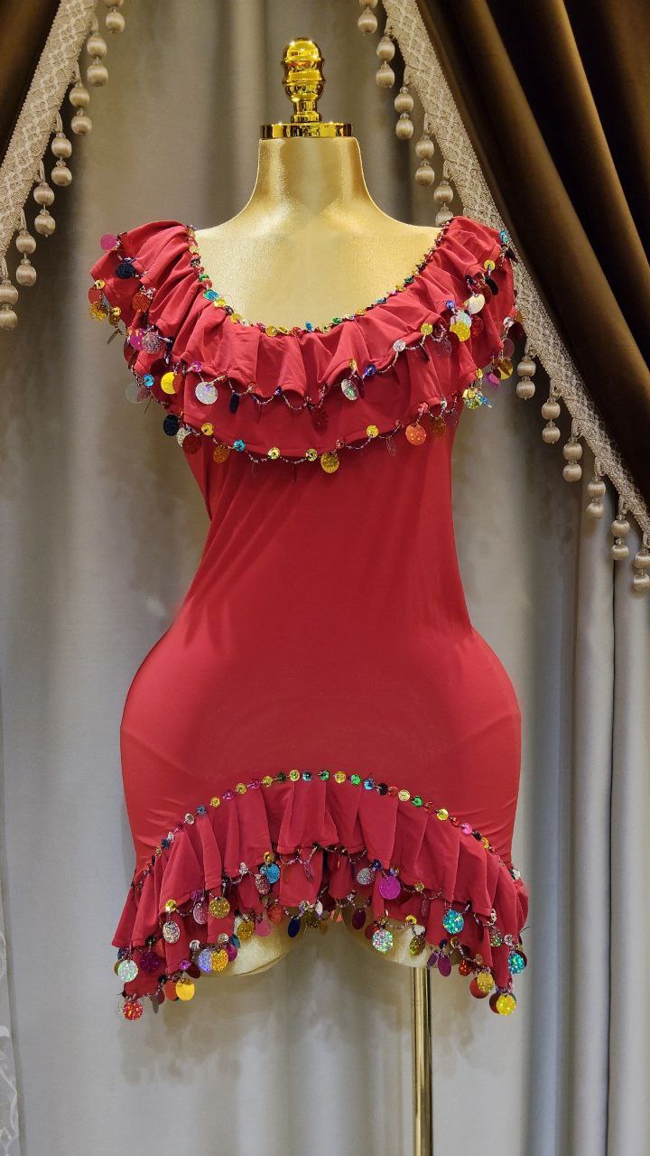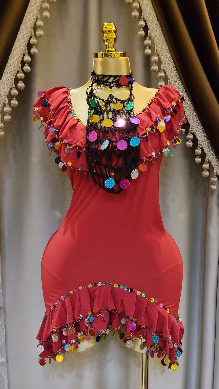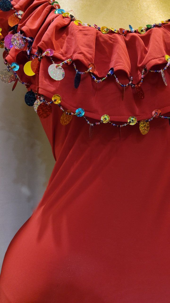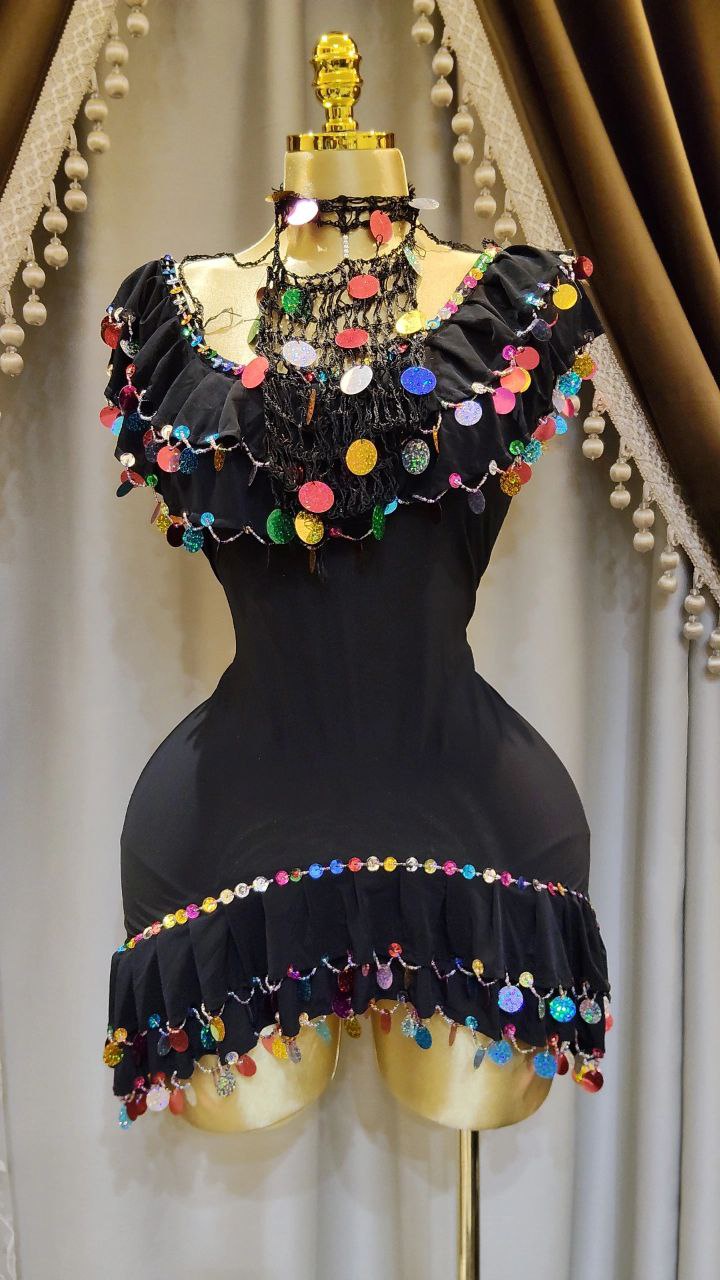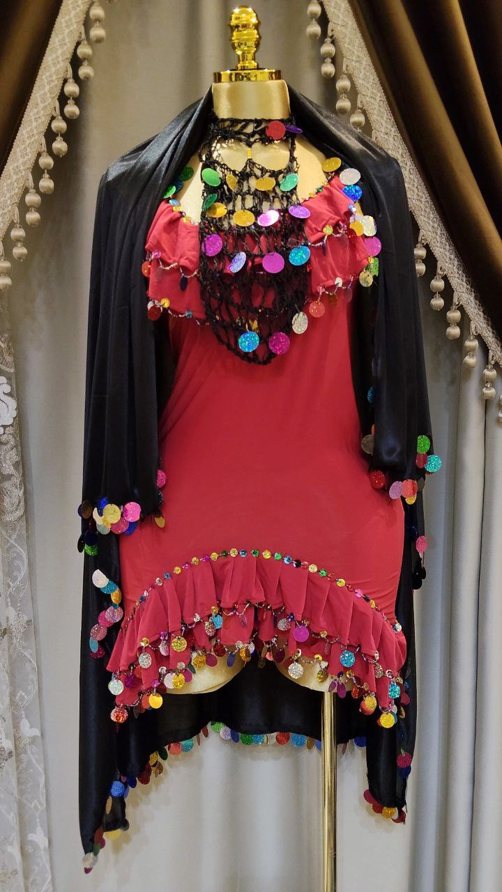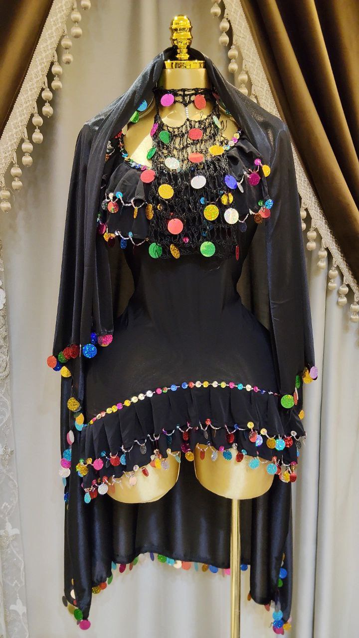 بدلة ليكرا مزينة بالخرز والترتر مع برقع من خيط التريكو و ملاية من الستان الناعم