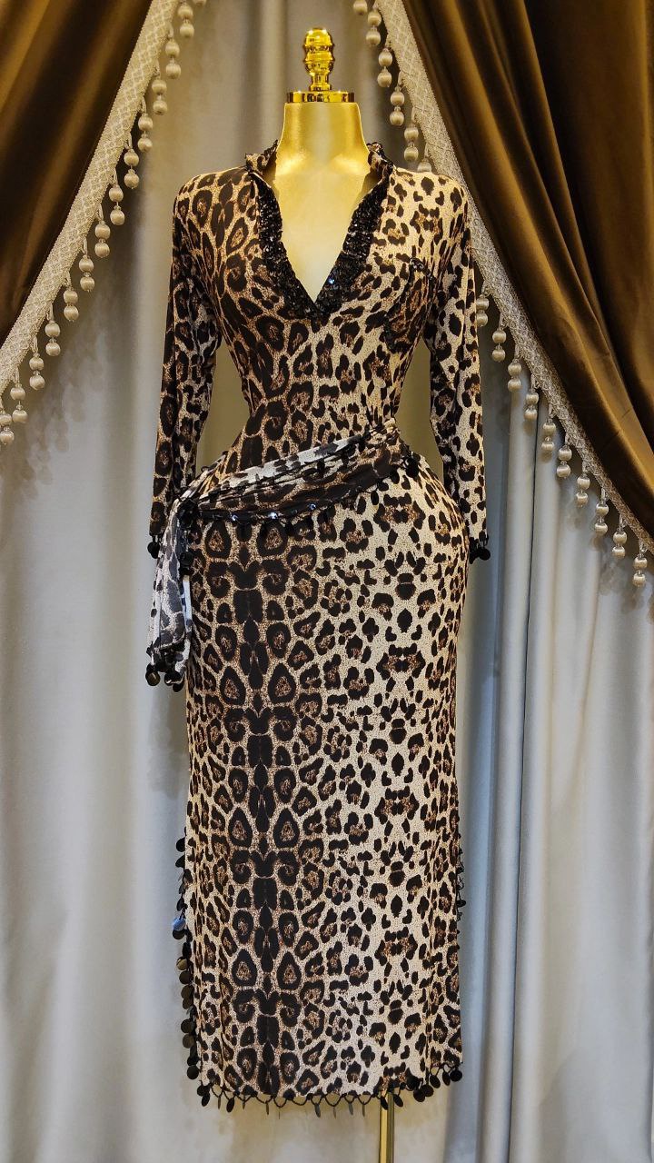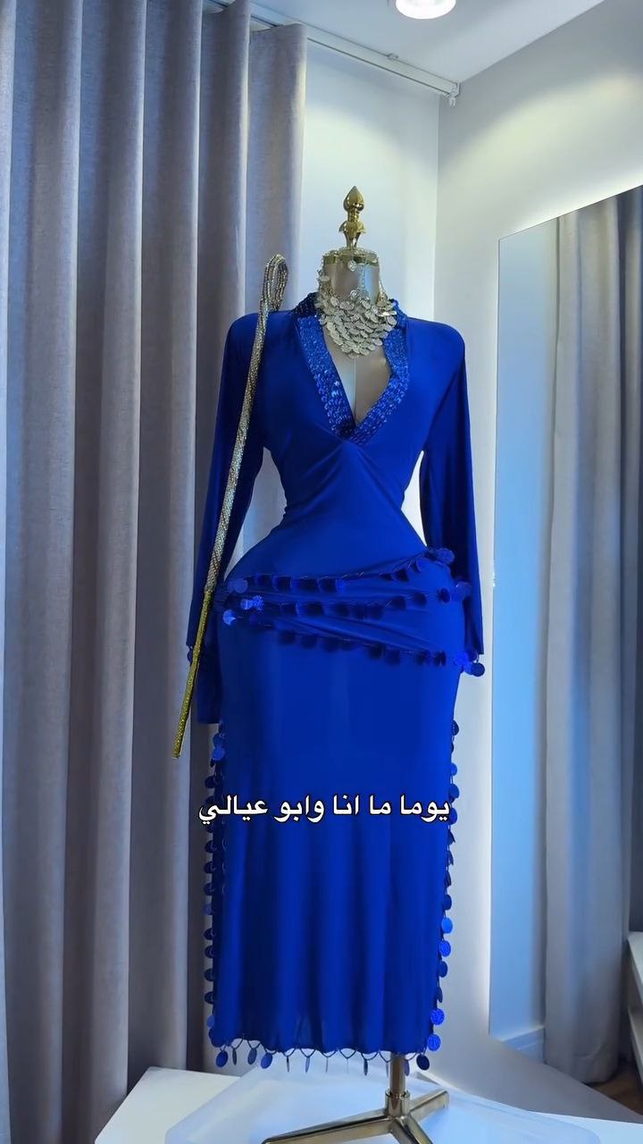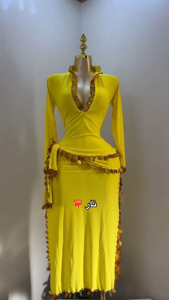 جلابية فيفي للرقص الشرقي مصنوعة من قماش ليكرا مريح، مع حزام وسط مزين بالخرز والترتر لإطلالة متكاملة.المقاسات: