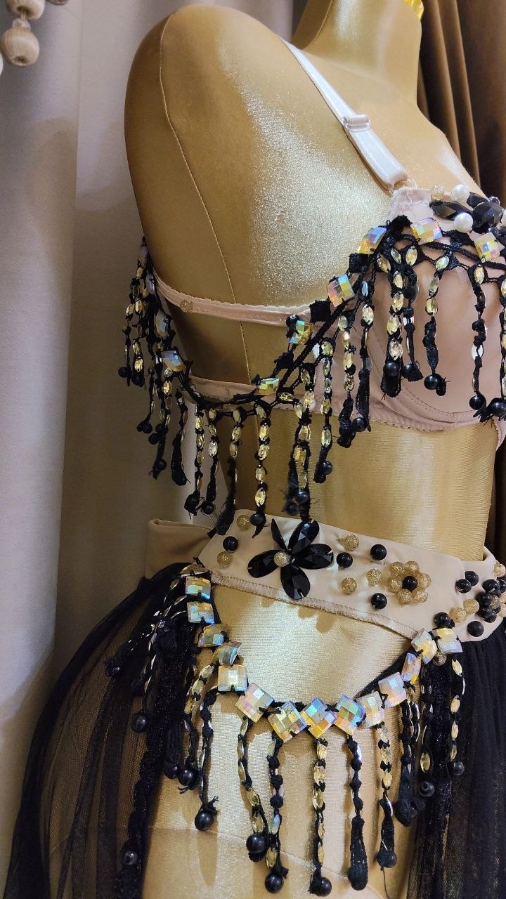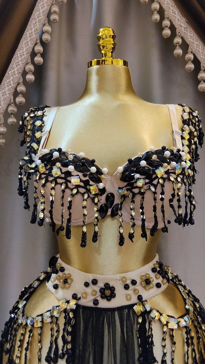 . جيبة من التل الناعم مع كب بوش مرصع بكريستال وشراشيب جوبير تركي مع حمالات سهلة التحكم