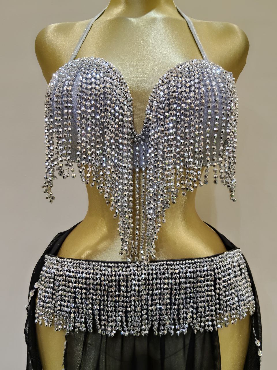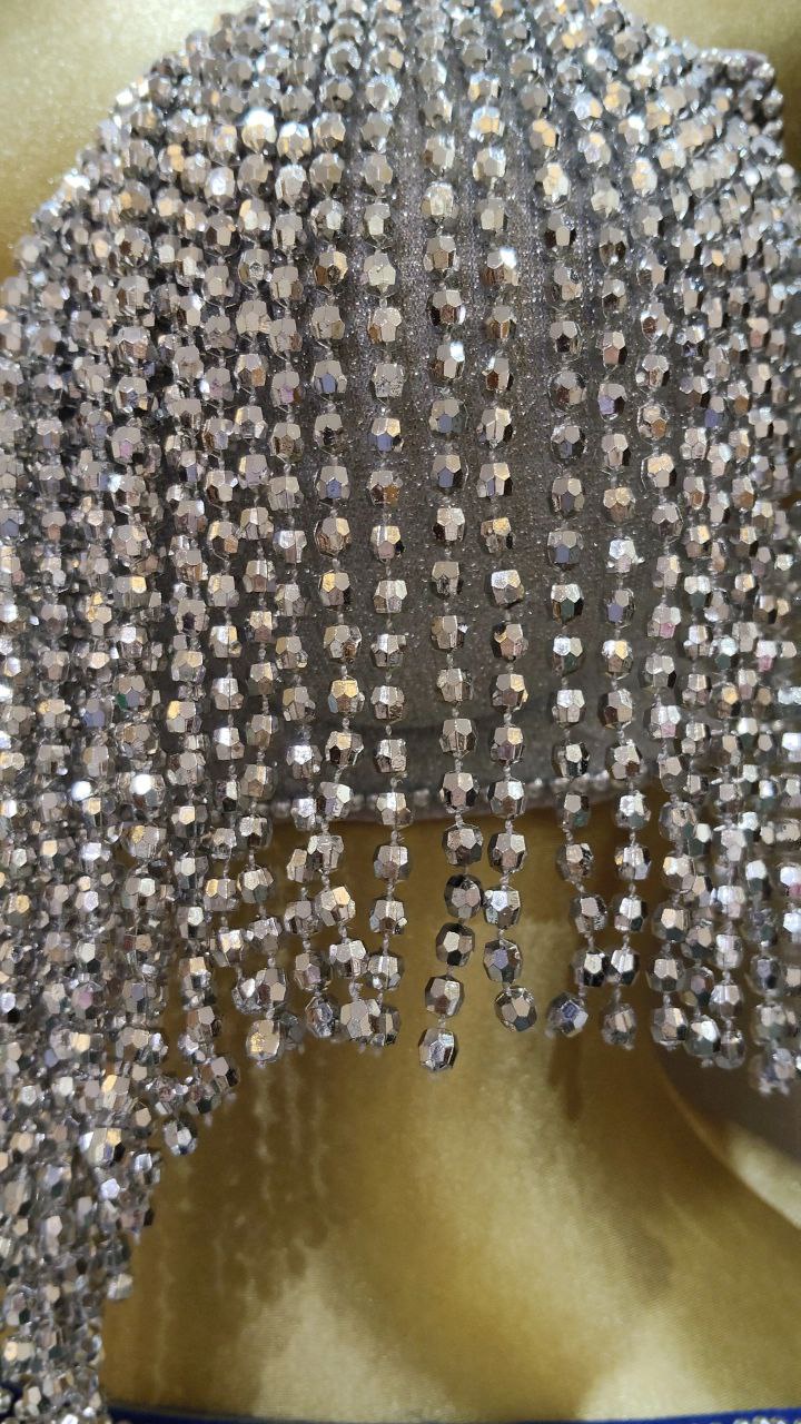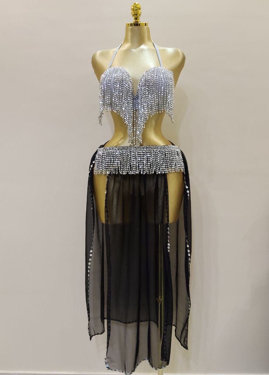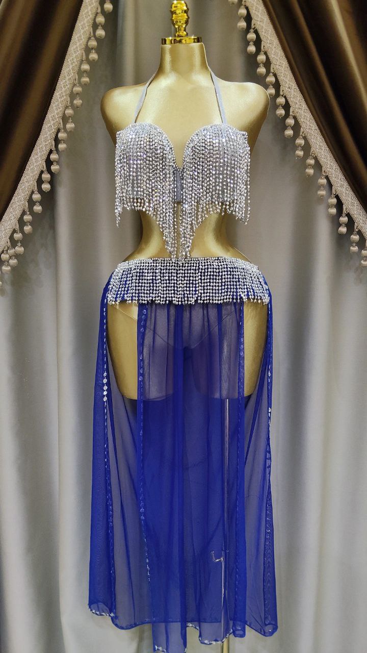 بدلة لؤاؤه للرقص الشرقي تصميم انيق بجيبه شيفون خفيفة.مزين بلآلئ ناعمه تضيف لمسه فخامه هادئة.