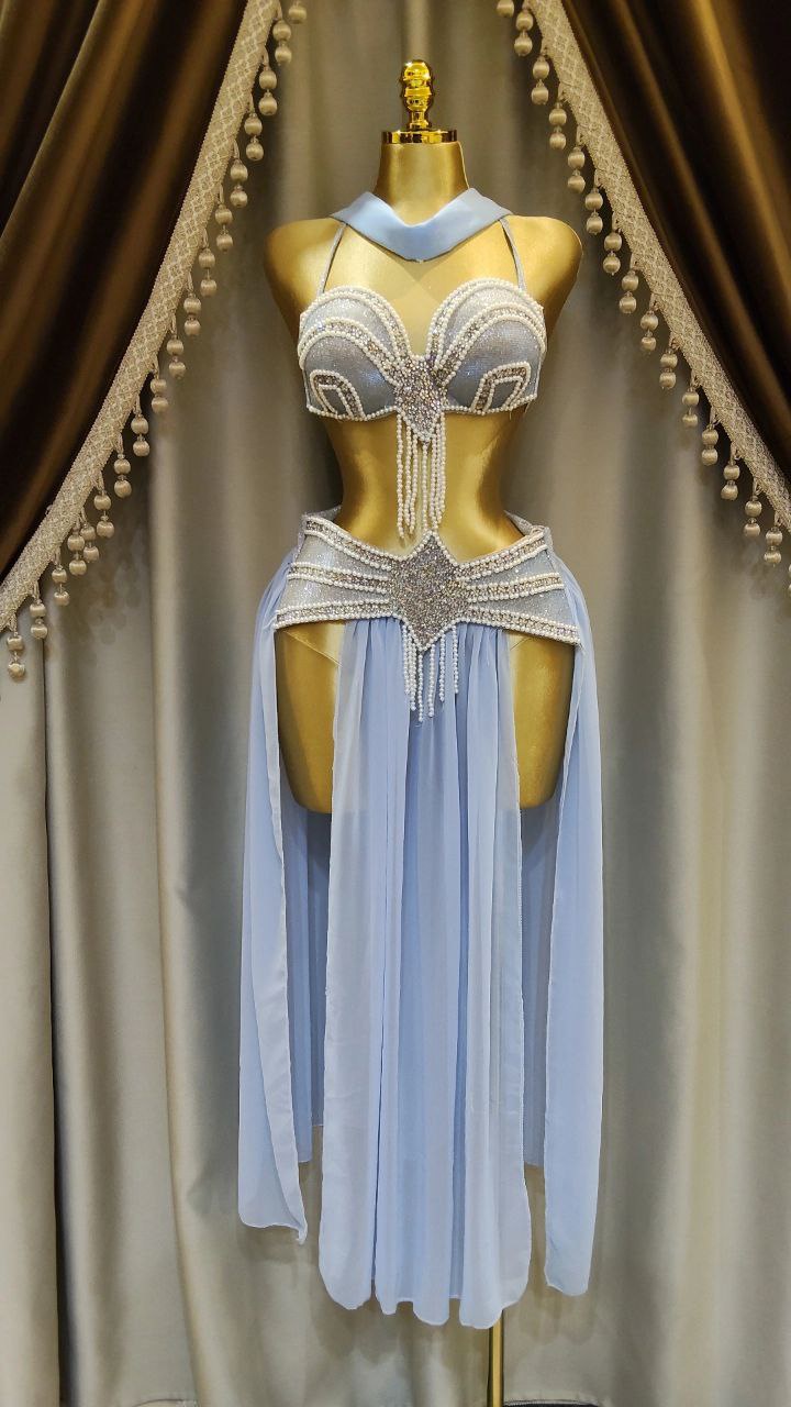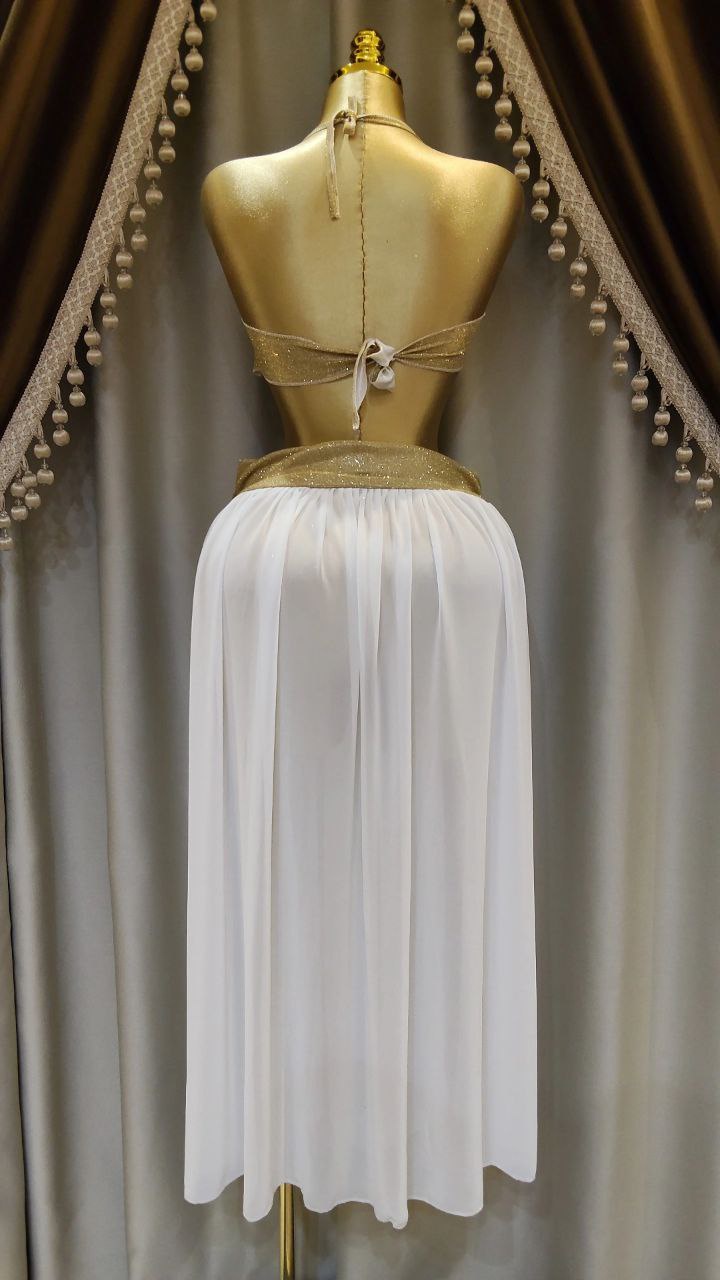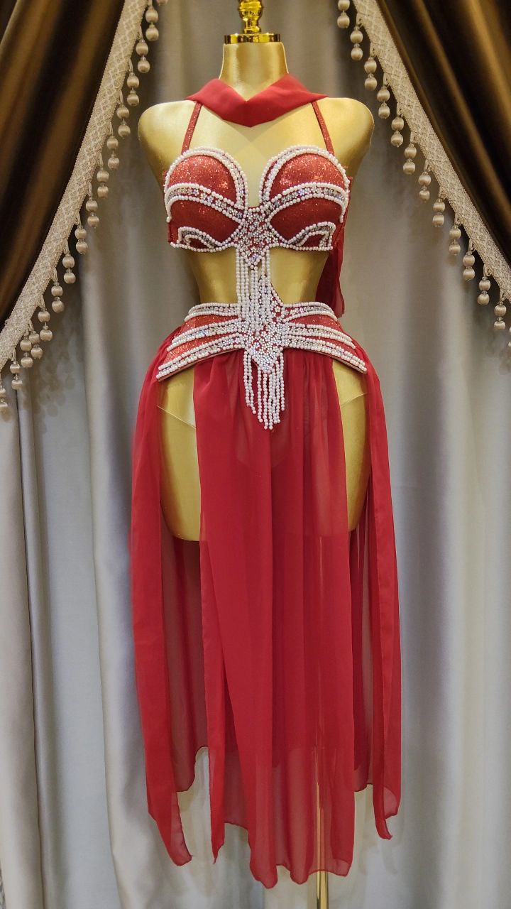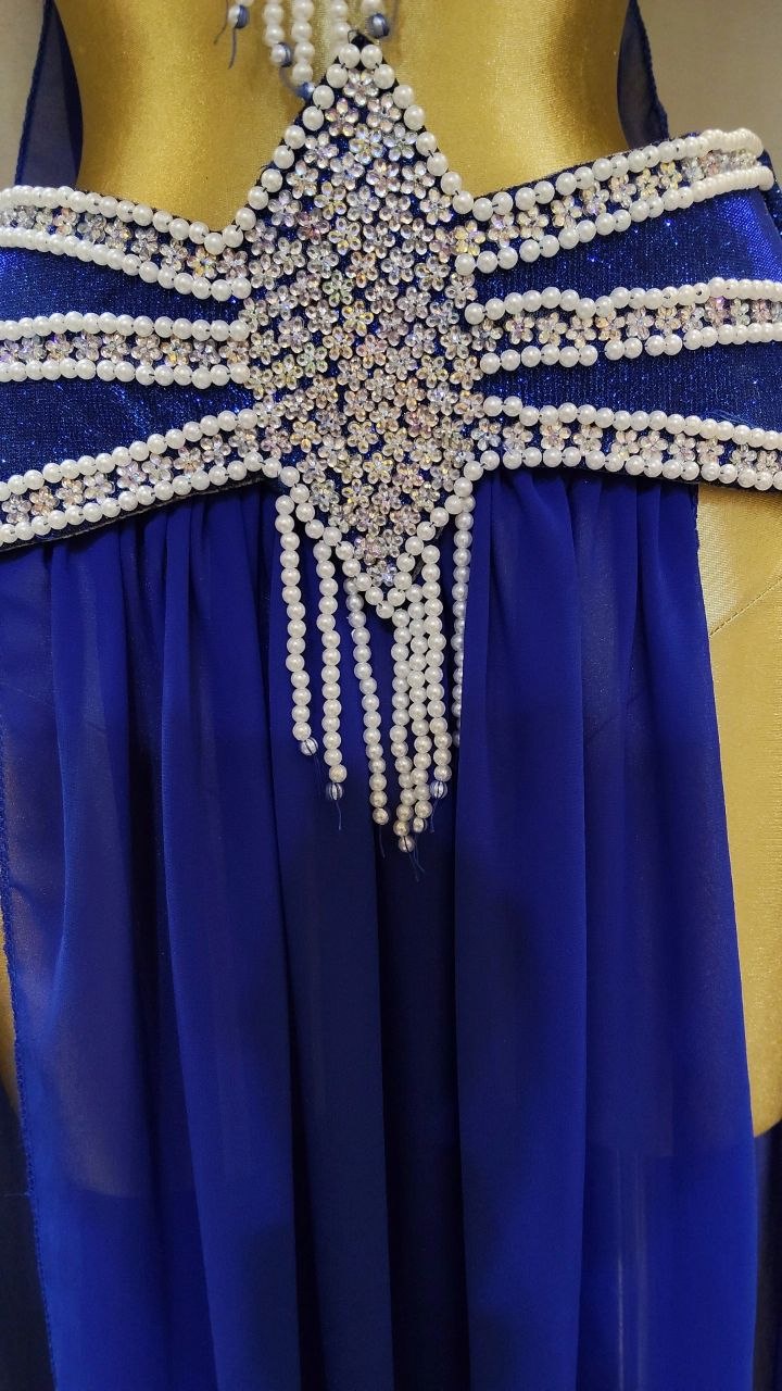 . جيبة من الشيفون الناعم و كب من الديسكو اللامع مع خرز و لؤلؤء