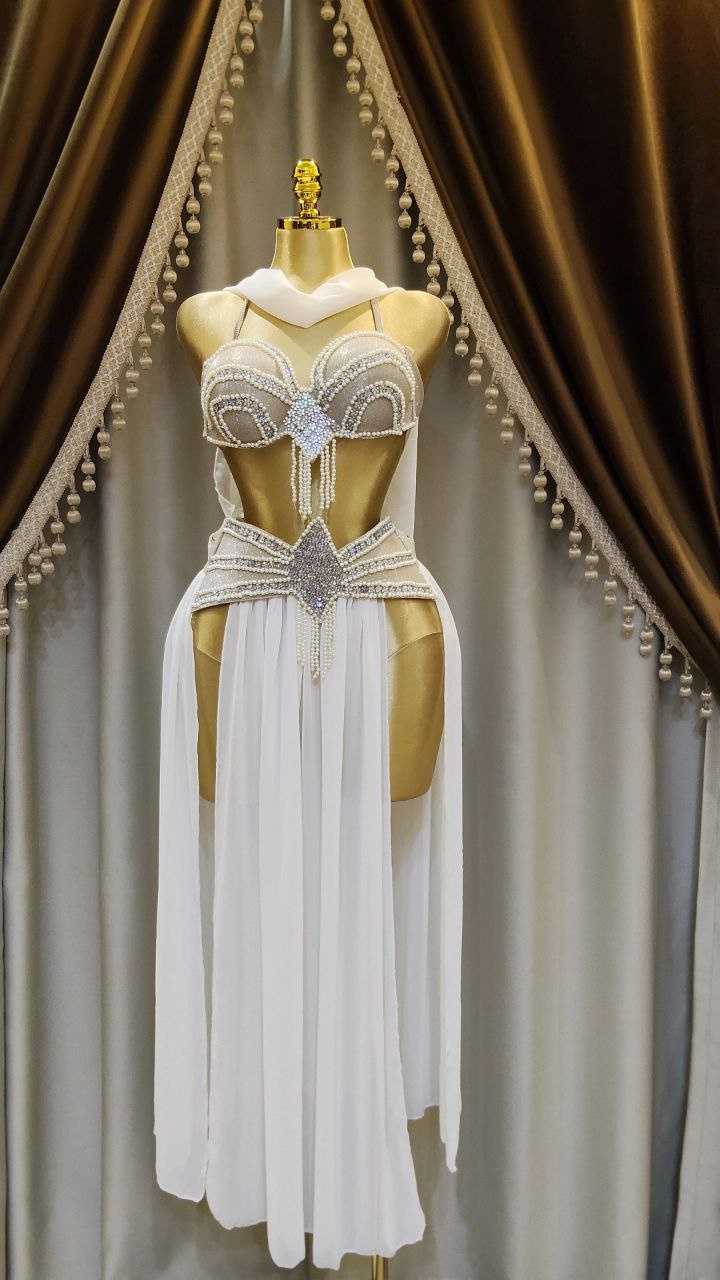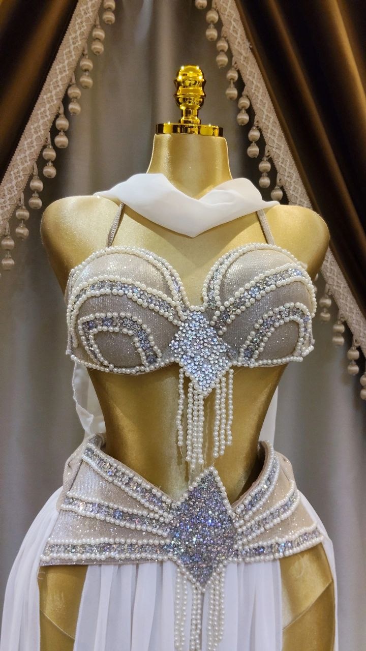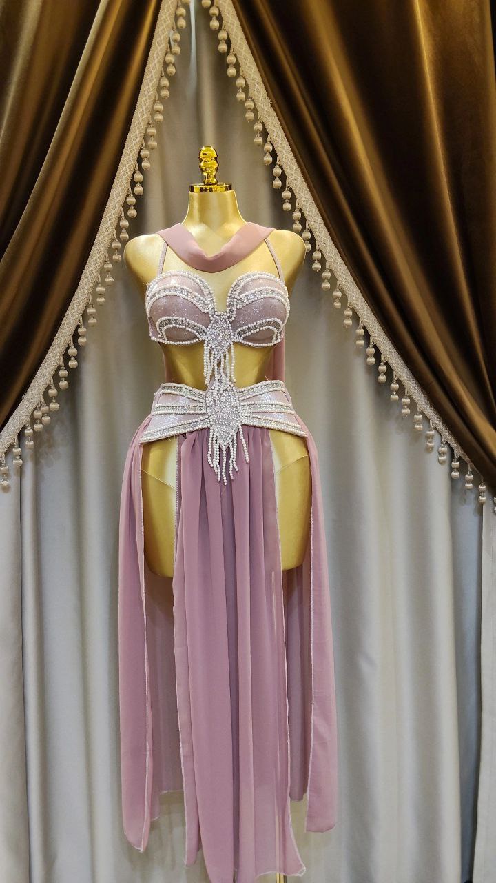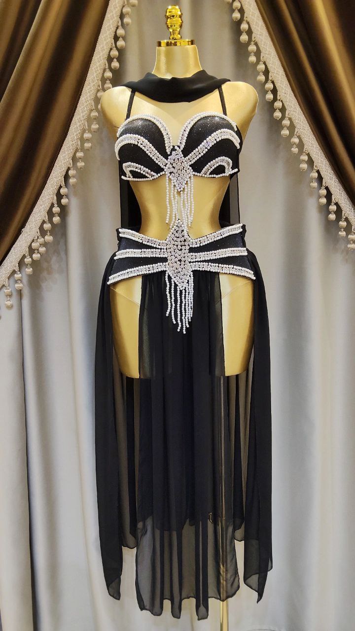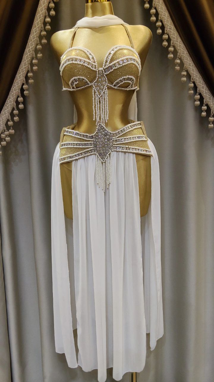 . جيبة من الشيفون الناعم و كب من الديسكو اللامع مع خرز و لؤلؤء
