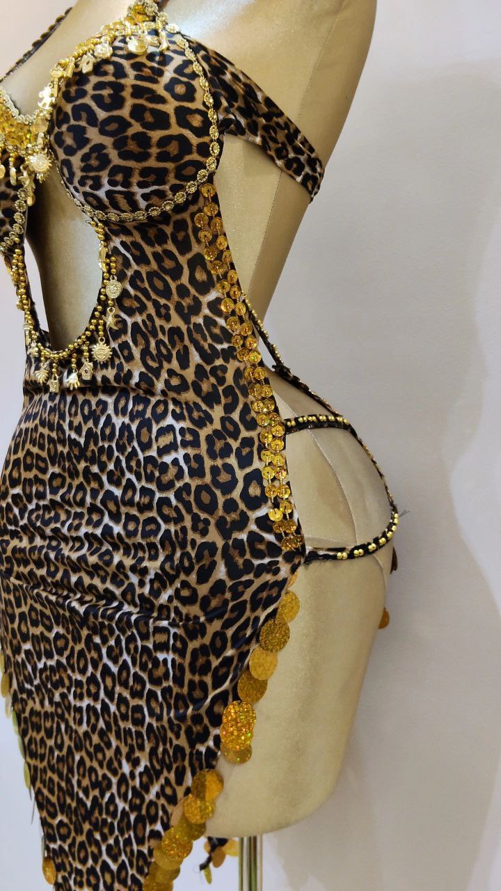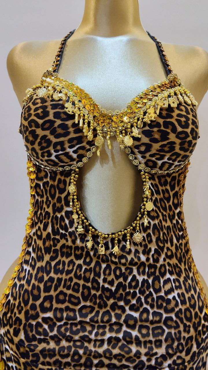 بنقشة التايجر الجريئة من خامة الليكرا الناعمة، مزينة بإكسسوارات هاند ميد ذهبية متقنة تبرز جمال التصميم. تتميز بقصة عصرية وجذابة تمنحكِ مرونة تامة وتألقاً استثنائياً. اطلبيها الآن